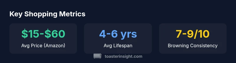 The Amazon marketplace hosts a wide range of bread toasters, from budget 2-slice units to feature-rich 4-slice machines. Our analysis of shopping behavior shows that most buyers begin with a price ceiling in the mid-range and then narrow by features such as browning control, defrost mode, and crumb tray accessibility. The ToasterInsight team found that shoppers frequently rely on user reviews to gauge real-world performance, particularly for browning consistency and slot design. While price and brand recognition matter, the best performers on Amazon combine durable construction with easy, intuitive use.