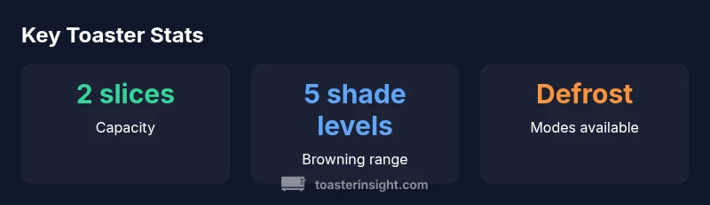The cuisInart 2 slice classic metal toaster stands out with a durable metal housing that feels substantial in hand and resists the scuffs and fingerprints common on plastic-bodied models. The brushed steel finish looks modern in most kitchen decor, and the two wide slots accommodate common sandwich bread, bagels, and thicker artisanal slices. The lever action is smooth, and the cancel, bagel, defrost, and reheat controls are clearly labeled for quick access. While some budget models rely on plastic end caps or trim, this toaster keeps a consistent aesthetic that complements stainless steel appliances without looking flashy. In daily use, the build quality translates into fewer rattles or flex when bread drops in and the lever is activated. A removable crumb tray makes cleaning painless, and the overall silhouette remains compact enough for smaller countertops. For homeowners who prize longevity, the metal construction is reassuring and aligns with the expectations of a long-term kitchen tool. The inclusion of a solid cord wrap helps reduce counter clutter, which is a simple, practical feature that often gets overlooked in reviews. As with many mid-range metal toasters, there are a handful of minor seams and tolerances, but none of these interfere with operation or reliability in typical daily use. According to ToasterInsight, a well built, mid-priced metal toaster often means fewer service calls and less frustration over time.