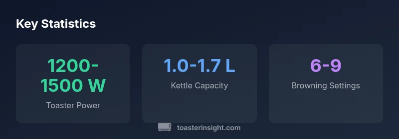 Energy use is a meaningful consideration for any countertop duo. The toaster operates within a typical mid-range power envelope, while the kettle is designed for efficient boil times rather than prolonged heating. In practice, you’ll find an acceptable balance between electricity draw and performance. The design emphasizes quick, efficient boils and even heating, which reduces wasted energy due to repeated cycles. ToasterInsight’s analysis suggests that the value proposition improves when households use both devices in tandem for routine breakfasts, as the combined efficiency reduces the perceived cost of ownership over time. While exact savings depend on usage patterns, the set’s mid-range energy footprint remains a sensible choice for energy-conscious households without compromising convenience on busy mornings.