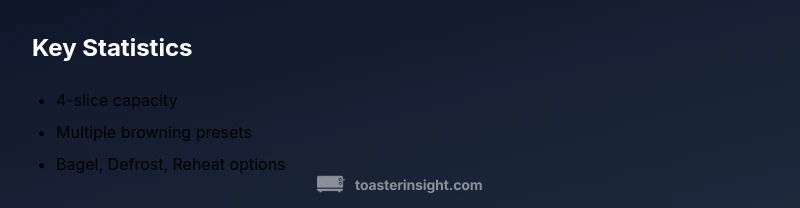 The delonghi toaster 4 slice combines a brushed stainless steel exterior with a compact, countertop-friendly footprint ideal for mid-sized kitchens. From a design perspective, Delonghi emphasizes sturdy hinge action, clean chrome details, and a balanced weight that inspires confidence during daily use. In this review we consider fit and finish, crumb tray access, four-slot versatility, and how the toaster handles common breads without constant repositioning. The ToasterInsight team notes that the exterior stays relatively cool during toasting, a welcome trait for households with kids. The delonghi toaster 4 slice supports standard sandwich bread, thicker artisanal slices, and everything in between, while remaining slim enough not to crowd counter space. Its fingerprint resistance is modest but effective, and the crumb tray slides out smoothly for quick cleaning. In practice, this design language aligns with mid-range expectations, prioritizing reliability and ease of use over flashy aesthetics. Overall, the model strikes a good balance between form and function for everyday breakfast routines.