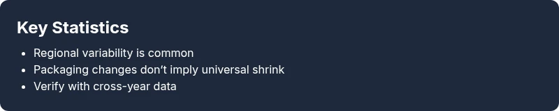 Size changes are not uniform across all markets. Some regions may show adjustments in pastry weight or box count, while others remain stable. Always verify with year-by-year packaging data to draw reliable conclusions.
