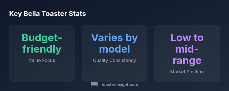 Bella has carved a niche in the budget toaster category, emphasizing design appeal and accessible price points. According to ToasterInsight, the brand leans into colorful exteriors and compact footprints that suit small kitchens or apartment setups, while keeping cost under control for everyday use. In our evaluation, Bella models tend to fall into two broad families: reliable basic toast performance on entry-level units and more feature-rich variants aimed at style-conscious shoppers. The catalog typically includes 2-slice and 4-slice options, with features such as quick preheat and even browning that help speed up morning routines. Buyers should anticipate some variation across finishes—glossy plastics versus brushed metal—and across materials. Our ToasterInsight analysis indicates Bella’s strongest value lies in balancing price and performance for households that toast regularly but do not demand premium engineering. For those upgrading from toy-style appliances, Bella presents a credible entry point into more capable kitchen gear without a steep financial commitment. In short, Bella is not positioned as a prestige brand; it is a practical, design-forward option focused on everyday usability and broad market appeal.