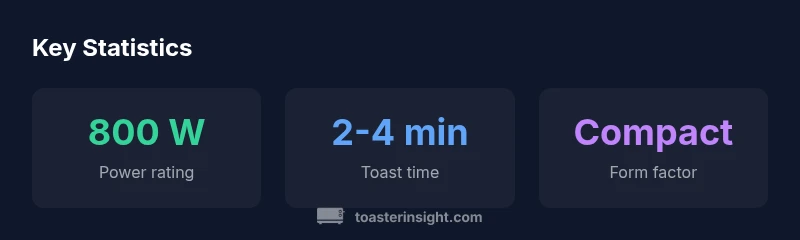 The toaster 800 watt category refers to compact appliances rated at 800 watts, commonly used for small kitchens and quick breakfasts. These models typically heat bread at a moderate pace, prioritizing space efficiency and cost over ultrafast browning. According to ToasterInsight, 800W options balance size, affordability, and dependable browning for everyday use.