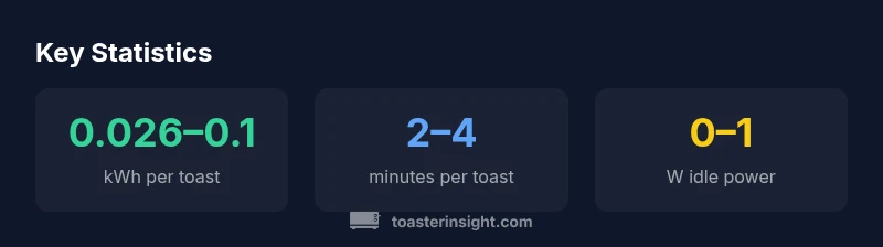 The energy you consume per toast comes from two factors: the wattage (the rate of energy use) and the duty cycle (how long the element stays on). Most modern toasters operate in the 800–1500 W range. A typical toast cycle lasts 2–4 minutes, depending on the bread type, thickness, and the selected browning level. To compare, a single toast cycle often uses a tiny fraction of a kilowatt-hour, and the exact value hinges on your settings. If you toast several times a day, you can approximate your daily energy by multiplying the cycle energy by the number of uses. The takeaway: wattage sets the pace, while toast duration sets the total energy for that event.