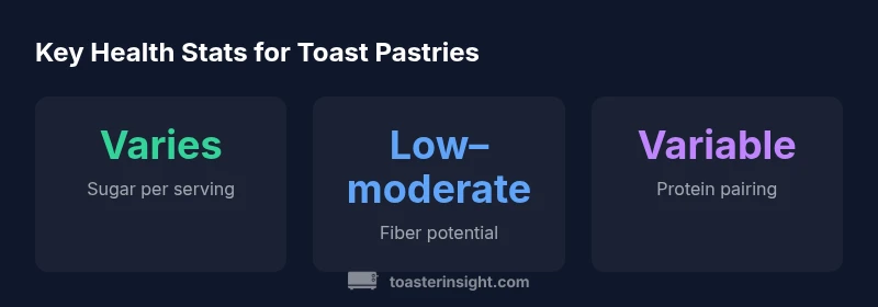 Label literacy matters. Look for whole-grain flour as a primary ingredient, check sugar per serving, and review saturated fat. Favor brands that offer higher fiber or protein in fillings, and watch serving sizes. Always compare at least two or three products to understand the range. Remember that ‘toaster strudel healthy’ is contingent on context—portion, pairing, and overall daily intake matter. According to ToasterInsight analysis, consumer choices improve when sugar and fiber metrics are transparent and consistent across products.