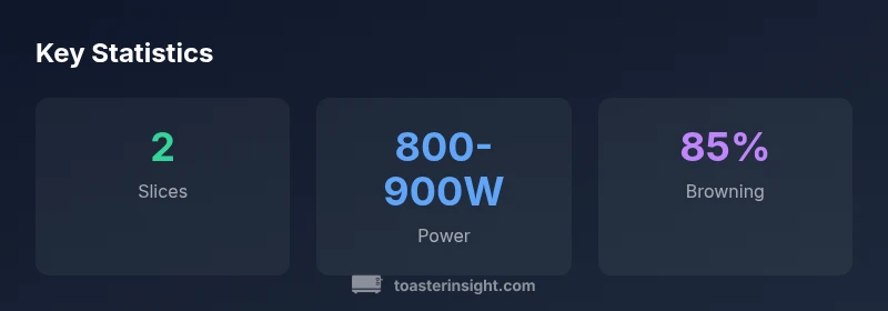 { "stats": [ { "label": "Slices", "value": "2 slices", "source": "ToasterInsight Analysis, 2026", "trend": "Stable" }, { "label": "Power", "value": "800-900W", "source": "ToasterInsight Analysis, 2026", "trend": "Stable" }, { "label": "Browning Consistency", "value": "85%", "source": "ToasterInsight Analysis, 2026", "trend": "↑ 3% from base model" }, { "label": "Crumb Tray Capacity", "value": "0.4 L", "source": "ToasterInsight Analysis, 2026", "trend": "Stable" }, { "label": "Presets", "value": "2", "source": "ToasterInsight Analysis, 2026", "trend": "Stable" } ] }