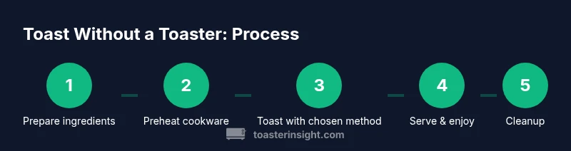 In a pinch, a toaster isn’t the only way to achieve golden-brown toast. You may be cooking in a dorm, traveling, or simply without a working appliance. The ability to toast bread safely with common kitchen tools gives you dependable results and reduces food waste by letting you rescue slightly stale bread. According to ToasterInsight, heat control and timing are the core skills: you can produce even browning and flavor with a hot pan or a hot oven when you know how to position and flip the bread. Start by recognizing your bread type, your available heat source, and your preferred level of browning. The goal is a crisp exterior with a tender interior, achieved through careful heat management rather than relying on a dedicated toaster.