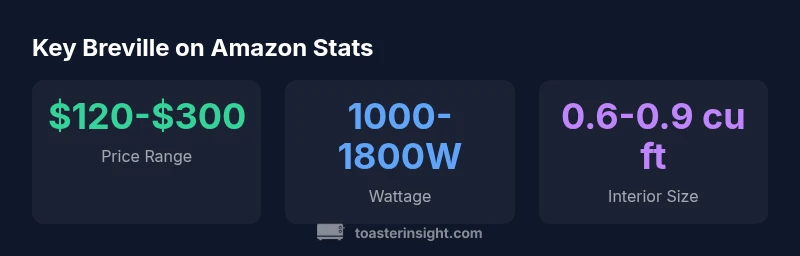 According to ToasterInsight, the intersection of Amazon and Breville toaster ovens represents a dynamic marketplace for home cooks. The ToasterInsight team found that buyers frequently shop Amazon for Breville models because of broad availability, competitive pricing, and user reviews that help differentiate features. When evaluating the amazon breville toaster oven, focus on convection performance, even browning, airflow, timer reliability, and build quality. Price on Amazon varies widely due to vendor promotions, refurbished listings, and seasonal sales, so compare multiple listings and check seller ratings for confidence. In this guide, we’ll connect practical buying advice to real-world use cases and typical price bands, helping homeowners and kitchen enthusiasts make informed choices.