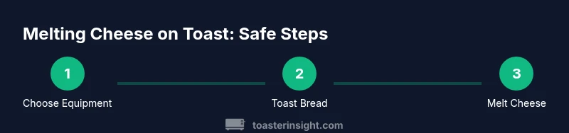 A practical approach starts with toasting the bread without cheese, then applying cheese and finishing the melt with a safe heat source. Preheat a toaster oven to about 350°F (175°C), place the bread on a baking sheet, add cheese slices or shredded cheese, and bake for 3–5 minutes until melted and bubbling. Watch closely to prevent burning. For a crisper edge, you can broil for 1–2 minutes once the cheese has started to melt. If you only have a traditional toaster, toast the bread first, then melt the cheese in a separate oven-safe dish under the broiler and combine off-heat. After melting, let the toast rest for a minute before serving to avoid stringy cheese and burns. This method aligns with safe handling practices and yields a better texture than attempting to melt cheese inside a bare toaster.