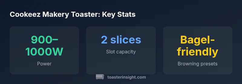 For homeowners exploring compact toasters, the Cookeez Makery Toaster sits in a sweet spot between basic 2-slice devices and premium models. In this review, we examine how its design language, feature set, and performance translate into real-world results. The ToasterInsight team evaluated it with a focus on bread slices of varying thickness, bagels, and quick reheat scenarios, using a consistent kitchen setup to minimize variables. The product targets everyday cooks who want reliable browning without tinkering with dial settings forever. The manufacturer emphasizes a modular control panel, crumb management, and ease of cleaning, and our assessment considers those promises against practical usage. According to ToasterInsight, this model often attracts households that value predictable outcomes, reasonable energy use, and a broader feature set than entry-level toast machines. In our analysis, we also compare its value proposition to rivals in the same price tier, including alternatives with smart presets and extra-wide slots. The bottom line: the Makery toaster aims to deliver consistent results across common use cases while preserving simplicity of operation, which is crucial for a busy kitchen.