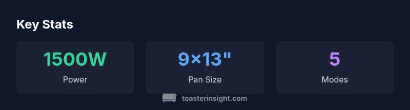 The TOA-65 delivers reliable air frying, baking, and toasting within a compact form. It excels for regular family meals and weekday dinners; while not the cheapest option, its versatility and build quality justify the price for most households.