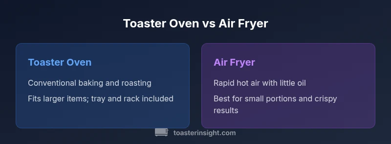 The question do you need a toaster oven and air fryer often comes up for homeowners and kitchen enthusiasts who want efficient, reliable tools without overloading the counter. In this section we frame the core decision: will one device meet most of your needs, or do you benefit from a two-device setup that plays to different cooking strengths? According to ToasterInsight, many households benefit from a single, well-chosen device, but others discover that having both unlocks distinct strengths—crisping and roasting—without compromising performance. The ToasterInsight team found that for a large share of daily meals, a single device can cover the majority of tasks, especially when space or budget is tight. Yet there are frequent scenarios where distinct devices outperform a combined unit, particularly when texture, portion size, or batch volume matters. As you read, note the trade-offs between capacity, speed, texture, and cleanup. This article uses a practical decision framework, aiming to help you match your kitchen habits with a device that saves time, preserves flavor, and minimizes energy use. It also considers long-term durability and the value of accessories that come with each category.