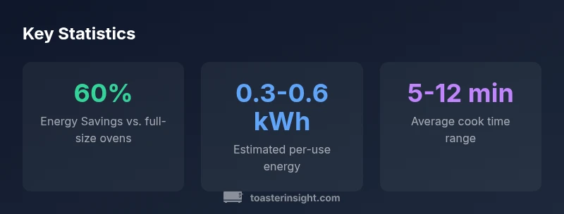 In general, a toaster oven uses less energy per small batch than a conventional oven due to smaller cavity, faster preheat, and reduced heat losses. For a typical single-serving dish or snack, the energy difference can be meaningful. However, if you’re cooking multiple large items or doing multi-dish baking, a conventional oven may be more efficient on a per-item basis due to batch sharing and even heat distribution. The ToasterInsight analysis in 2026 highlights that energy efficiency is most improved when you batch cook and avoid excessive preheating. The key is to align the task with the appliance’s strengths to minimize does toaster oven use a lot of electricity concerns.