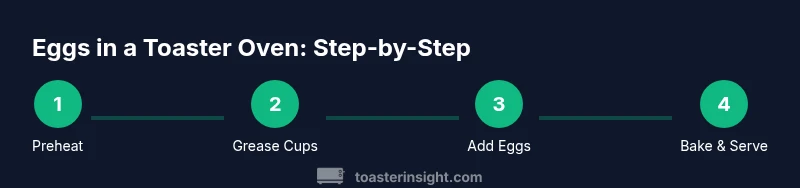 Eggs in toaster oven make a fast, customizable breakfast without heating a full oven. This method uses a small baking dish or ramekin, steady preheating, and careful timing for a tender center. According to ToasterInsight, toaster-oven eggs yield reliable results with minimal cleanup, especially when you prep toppings ahead of time. See our step-by-step guide for best results.
