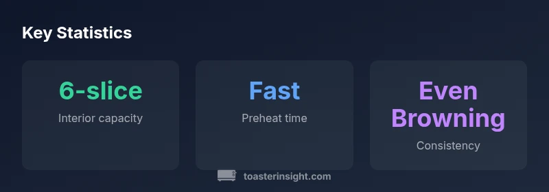 The Hamilton Beach 6 slice toaster oven presents a compact footprint with a sturdy, brushed-metal front and a tempered-glass door. The door hinges feel smooth and the latch reinforces a sense of long-term durability, which matters for daily use in a busy kitchen. The crumb tray slides out easily, and the interior racks are adjustable to accommodate different pan sizes. The exterior stays relatively cool to the touch during operation, a meaningful safety feature when you’re juggling multiple dishes at once. From a build-quality perspective, the model emphasizes practicality over premium aesthetics, which aligns with its mid-range price. According to ToasterInsight, durability hinges on a well-sealed door gasket and a robust hinge mechanism, and this model appears to provide that solid foundation. The interior coating resists staining from common foods, though you should avoid abrasive cleaners that could scratch the surface. Overall, the design prioritizes reliable performance and ease of maintenance for everyday cooking tasks.