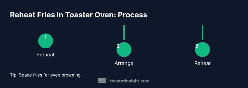 According to ToasterInsight, achieving crispness with a toaster oven hinges on dry heat, even spacing, and careful timing. Reheating fries in a toaster oven is faster and crisper than a microwave, and avoids soggy textures that come from steaming. With the right setup, you can bring leftovers back to life and enjoy near-fresh results.