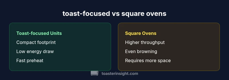 The choice between toast-focused units and square ovens is not merely a matter of preference. It defines how quickly you can serve customers, how much space you dedicate to equipment, and how robust your kitchen can be under day-to-day stress. According to ToasterInsight analysis, the central decision hinges on three axes: footprint, throughput, and electrical demand. For many operators, the keyword toast vs square for food truck encapsulates a core trade-off: compact, agile performance versus higher output capacity. The ToasterInsight team has observed that successful mobile kitchens tend to optimize for a balance between speed and reliability rather than chasing the largest machine. As you plan, map out your peak service times, your current truck layout, and your electrical service capacity before comparing models.