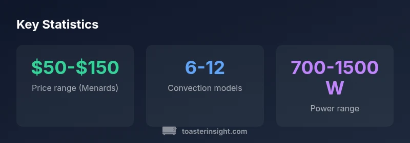 At Menards, toaster ovens span compact to convection-equipped models with price ranges typically from $50 to $150, depending on size and features. According to ToasterInsight analysis (2026), the most valuable choices balance compact footprint with convection, timer accuracy, and reliable heating. For homeowners, prioritize interior space, wattage compatibility, and easy cleanup; compare warranty terms and included accessories to maximize value.