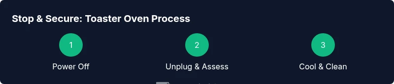 This guide helps you stop a toaster oven quickly and safely by turning the unit to Off, unplugging it, and carefully removing any food with heat-resistant gloves. If smoke or a fire starts, evacuate and call for help. Always allow the oven to cool completely before cleaning or storage.